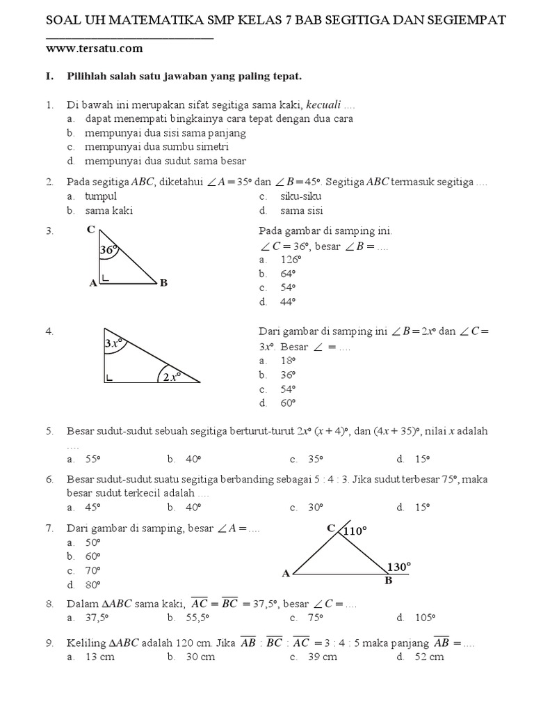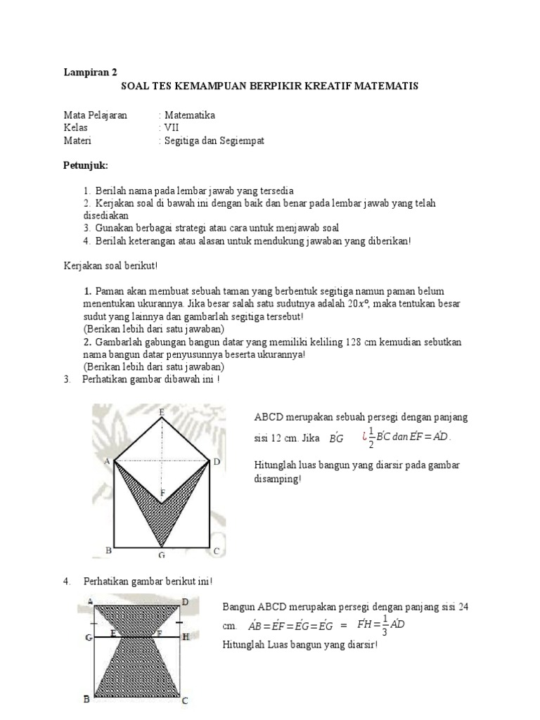 Contoh Soal Segiempat Dan Segitiga Matematika Smp 1 Idschool from idschool.net We did not find results for: Maybe you would like to learn more about one of these? Check spelling or type a new query. Materi segitiga dan segiempat kelas 7 doc.