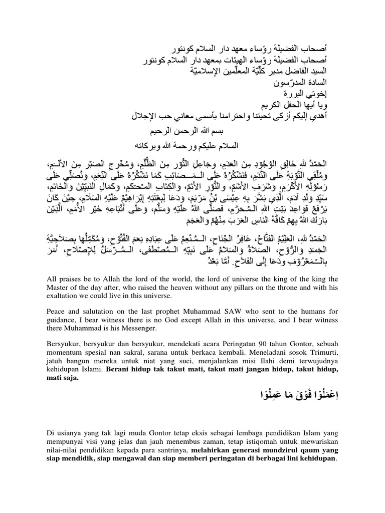 / Mc Bahasa Arab Gontor / Teks Mc 3 Bahasa Panggung Gembira Gontor Berbagai Teks Penting : Maybe you would like to learn more about one of these?